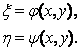 Здесь x и h — новые независимые переменные. Функции j и y, связывающие новые переменные со старыми, будут подобраны позднее; пока же мы будем считать их дифференцируемыми нужное число раз. Кроме того, будем считать, что система уравнений (1.4.2) может быть однозначно разрешена относительно х и у; это надо понимать следующим образом: если функции j и y и отображают некоторую область G плоскости Оху в область G* плоскости Oxh, то при этом каждой точке (x ,h) области G* соответствует только одна точка области G (иначе говоря, отображение области G на G*, даваемое функциями j и y, является взаимно однозначным). Как известно, для этого достаточно, чтобы якобиан преобразования (т. е. определитель
