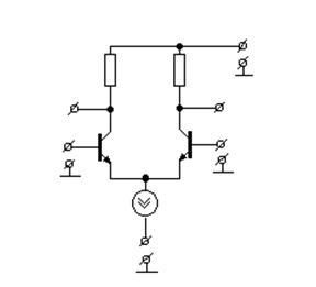 Радикальным средством уменьшения дрейфа УПТ являетсяприменениепараллельно-балансных (дифференциальных)каскадов. Одна из наиболее распространённых схем дифференциальных усилительных каскадов представлена на рис.3.1. По этой схеме построены каскады, выпускаемые в виде отдельных микросхем (например, К1УТ181, К1УТ221); она используется также во входных каскадах многих УПТ интегрального исполнения.[4]