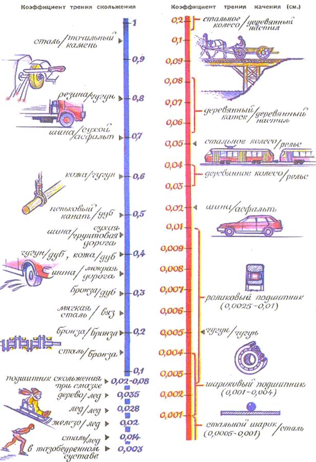 - коэффициент трения зависит от свойств трущихся поверхностей;