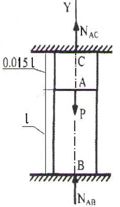 Рассмотрим схему формирования начальных остаточных напряжений в пластически деформированном слое его разгрузки из предельного состояния. Для этого возьмём в объёме полунебесконечного тела цилиндрический стержень BC разнородной упругости (рисунок.10), жестко защемленный и нагруженный силой P.