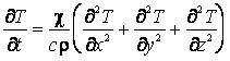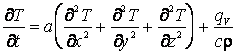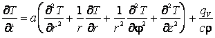 Это уравнение записано в декартовых координатах. В других координатах оператор Лапласа имеет иной вид, поэтому меняется и вид уравнения. Например, в цилиндрических координатах дифференциальное уравнение теплопроводности с внутренним источником теплоты таково: