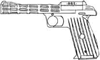 Личное реактивное оружие было разработано в США еще в 1970-х годах. Автоматический многозарядный пистолет получил название "Жироджет" и имеет калибр 13 мм. Его пуля представляет собой миниатюрную ракету, в донной части которой вокруг капсюля-воспламенителя располагаются 4 реактивных сопла, а в корпусе пули запрессована шашка твердого ракетного топлива. При выстреле капсюль накалывается на боек и воспламеняет реактивный заряд твердого топлива, под действием реактивной силы пуля по направляющим вылетает из ствола, попутно вновь взводя курок. Сопла располагаются под некоторым углом к оси пули, поэтому пуля закручивается вокруг своей оси, и таким образом происходит стабилизация ее в полете. Выстрел из реактивного пистолета почти бесшумен. Отдача практически отсутствует, что могло бы повысить кучнобойность оружия, однако реактивная пуля, испытывая сильное сопротивление воздуха (из-за большого диаметра), быстро теряет скорость. Еще одной причиной, по которой не происходит улучшение целевых характеристик, является уменьшение массы пули за счет выгорания реактивного заряда. Кроме того, по мнению автора, реактивная пуля не может набрать полной скорости сразу после покидания направляющих (по вылету из ствола), а поэтому, как на самых малых, так и на больших дистанциях, реактивный пистолет малоэффективен. Автором был разработан реактивный пистолет, призванный уменьшить основной недостаток "Жироджет", а именно быструю потерю скорости пули. Усовершенствованный неавтоматический самовзводный пистолет имеет сменную обойму на 7 реактивных патронов калибра 14 мм. В рамке 1 с помощью винта 2 закреплен кожух 3, удерживающий ствол-направляющую 4, фиксирующуюся в выбранном положении (предохранение-огонь) фиксатором 5 с пружиной 6. В приливе ствола расположен выбрасыватель 7 с пружиной 8. Ударно-спусковой механизм состоит из шептала 9 с пружиной 10, толкателя 11 с пружиной 12, спускового крючка 13 с пружиной 14, ударника 15 с отбойной пружиной 16, ударной тяги 17, бойка 18, промежуточного бойка 19 и боевой пружины 20. В магазине 21 расположен подаватель 22, промежуточный подаватель 23, пружина подавателя 24 и промежуточного подавателя 25. Удерживается магазин в шахте с помощью оригинальной двойной защелки. В пистолете применена пуля шрапнельного типа. Состоит она из двух частей, имеющих возможность движения относительно друг друга, но только при приложении значительных нагрузок. В тыльной части первичной пули 2 размещен заряд твердого топлива 4 и сопловый блок 3 с центральным реактивным соплом и кольцевым воспламенителем 5. В передней части размещен заряд метательного ВВ 6 и вторичная пуля 7. Передняя стенка первичной пули имеет передаточное отверстие. Если встреча пули с преградой происходит до полного выгорания реактивного топлива, задняя часть, продолжая двигаться относительно затормозившейся передней, набегает на хвостовик вторичной пули, в результате чего, форс пламени догоревшего реактивного топлива не передается через закрывшееся передаточное отверстие, и пуля действует исключительно приобретенной кинетической энергией реактивного ускорения. В случае когда дистанция превышает 20 .30 метров, выгоревший полностью реактивный заряд передает луч огня через передаточное отверстие к метательному ВВ, которое выбрасывает вперед вторичную пулю. Таким образ