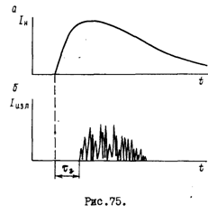 На рис.75 приведены осциллограммы интен-сивностей накачки (а) и выходного излучения (б).