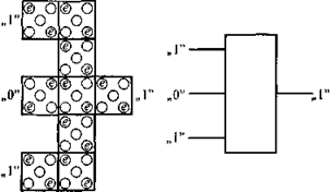 Рис. 2. Комбинации ячеек квантово-точечного автомата, при которых состояние на выходе определяется большинством состояний на входе.