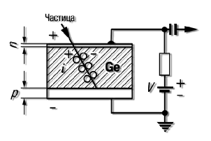 Меченые атомы, как правило, представляют собой радиоактивные (реже стабильные) нуклиды, которые используются в составе простых или сложных веществ для изучения химического, биологического и других процессов с помощью специальных методов (напр., масс- спектрометрия, радиометрия). Масс- спектрометрия (масс- спектроскопия)- это метод исследования вещества путем определения спектра масс частиц, содержащихся в веществе, и их относительного содержания (распространенности). Данный универсальный аналитический метод, широко применяется в физике, химии, биологии и медицине. Радиометрический анализ заключается в определении качественного и количественного состава вещества, основанный на использовании радионуклидов, обычно вводимых в реагенты или образующихся в анализируемом веществе под действием ядерных частиц или жестких g - лучей. Результаты радиометрического анализа получают по данным измерений радиоактивности продуктов реакции с помощью радиометрических приборов. Для регистрации радиационной активности применяют счетчик Гейгера (назван по имени Х. Гейгера), представляющий собой газонаполненный диод (обычно цилиндрический) с тонкой нитью в качестве анода. Действие основано на возникновении в газе в результате его ионизации (при пролете частицы) электрического разряда (коронного). В последнее время более распространены в силу своих высоких технических характеристик полупроводниковые детекторы, устройство которого показано ниже.