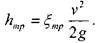 Потери удельной энергии в потоке жидкости, безусловно, связаны с вязкостью жидкости, но сама вязкость - не единственный фактор, определяющий потери напора. Но можно утверждать, что величина потерь напора почти всегда пропорциональны квадрату средней скорости движения жидкости. Эту гипотезу подтверждают результаты большинства опытных работ и специально поставленных экспериментов. По этой причине потери напора принято исчислять в долях от скоростного напора (удельной кинетической энергии потока). Тогда:
