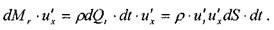 За счёт горизонтальной составляющей скорости пульсации и'х эта масса получит в новом слое жидкости приращение количества движения dM,