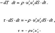 переток жидкости осуществлялся в слой, двигающийся с большей скоростью, то, следовательно, приращение количества движения будет соответствовать импульсу силы dT, направленной в сторону противоположную движению жидкости, т.е. скорости и'х: