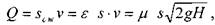Потери напора состоят из двух частей: потеря напора при истечении из отверстия в тонкой стенке (как при истечении в атмосферу):