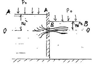 Пусть в резервуаре имеется перегородка с отверстием, уровни жидкости находятся