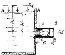 Внешний цилиндрический насадок. При истечении жидкости из цилиндрического насадка сечение выходящей струи и сечение отверстия одинаковы, а это значит, что коэффициент сжатия струи
