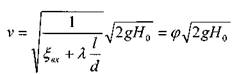 - коэффициент потерь напора в тонкой стенке Следовательно, скорость в сжатом сечении струи будет равна: