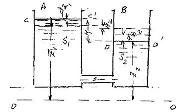 Рассмотрим два резервуара А и В, соединённые между собой трубопроводом с площадью сечения s. Питающий резервуар А имеет более высокий уровень жидкости