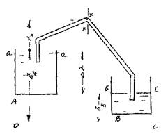 Критическим сечением в сифоне будет сечение х - х в верхней точке сифона. Давление в этой точке будет минимальным и для нормальной работы сифона необходимо, чтобы оно выло выше упругости паров перекачиваемой по сифону жидкости.