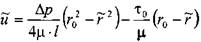 Таким образом, при расчётах движения вязкопластических жидкостей можно пользоваться уравнениями для ньютоновских жидкостей, заменяя в уравнениях величину числа Рейнольдса Re на обобщённый критерий Рейнольдса