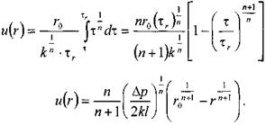 Тогда распределение скоростей в сечение потока будет соответствовать следующей зависимости: