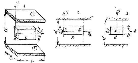 , где L и В - размеры пластины. Проведем в потоке щели два параллельных друг другу сечения на расстоянии / и выделим малый отсек жидкости в виде параллелепипеда со сторонами: