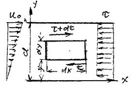 Вычислим величину средней скорости потока, для чего найдём величину расхода через щель. Элементарный поток жидкости dQ в тонком слое dy будет равен: