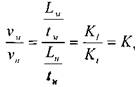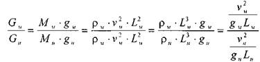 Тогда величины скоростей движения частиц в модели и натуре будут относиться между собой как: