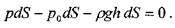 около точки М горизонтальную площадку площадью dS . Построим на данной площадке вертикальное тело, ограниченное снизу самой площадкой, а сверху (в плоскости свободной поверхности жидкости) её проекцией. Рассмотрим равновесие полученного жидкого тела. Давление на основание выделенного объёма будет внешним по отношению к жидкому телу и будет направлено вертикально вверх. Запишем уравнение равновесия в проекции на вертикальную ось тела.
