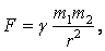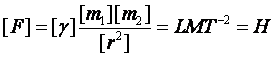 но размерность [F] = LMT-2, не соответствует размерности из этой формулы [F]=L-2M2. Для устранения недостатка введен коэффициент пропорциональности – гравитационная постоянная, численное значение которой определено экспериментально (в СИ