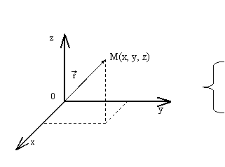 Положение точки однозначно определяется 3-мя координатами М (х, у, z).