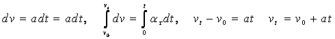 За малый промежуток времени dt тангенциальное ускорение изменяет скорость на величину