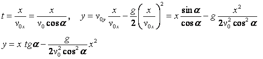 y = v0yt – gt2/2, где v0y = v0 sin α