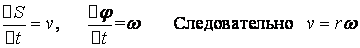 Отдельные точки вращающегося тела имеют различные линейные скорости v , которые непрерывно изменяют свое направление и зависят от ω и расстояния r соответствующей точке до оси вращения.