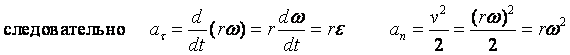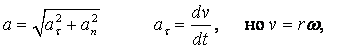 Из написанных формул видно, что aτ, an и a растут с увеличением расстояния точек до оси вращения. Формула v = ωr устанавливает связь между модулями векторов v, r, и ω, которые перпендикулярны друг к другу.