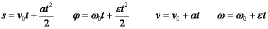 Следует отметить, что в вращательному движению применимы все формулы кинематики материальной точки с заменой в них линейных величин на соответствующие угловые.