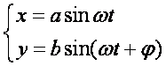 б) составляющая колебания отличается по фазе на π/2 . Уравнение траектории имеет вид: