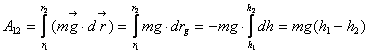 Примером поля консервативных сил является поле тяготения вблизи поверхности Земли. Работа, которая затрачивается на перемещение тела из положения r1 в положение r2 равна: