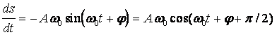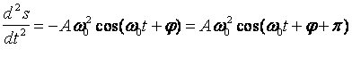 Запишем первую и вторую производные по времени от гармонически колеблющейся величины s: