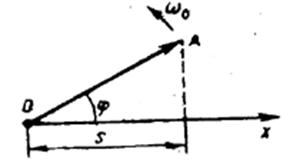 Если этот вектор привести во вращение с угловой скоростью w0, равной циклической частоте колебаний, то проекция конца вектора будет перемещаться по оси x и принимать значения от -А до +А , а колеблющаяся величина будет изменяться со временем по закону s =A cos (w0 t +j). Таким образом, гармоническое колебание можно представить проекцией на некоторую произвольно выбранную ось вектора амплитуды А, отложенного из произвольной точки оси под углом j, равным начальной фазе, и вращающегося с угловой скоростью w0 вокруг этой точки.