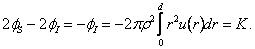 где r — расстояние от рассматриваемой точки. Рэлей отождествлял лапласовское K с разностью этого потенциала 2 между точкой на плоской поверхности жидкости (значение 2S) и точкой внутри (значение 2I). На поверхности интегрирование в (10) ограничено полусферой радиуса d, а во внутренней области проводится по всей сфере. Следовательно, S есть половина I, или
