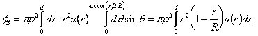 Рассмотрим теперь каплю радиуса R. Расчет fI не изменяется, но при получении fS интегрирование теперь проводится по более ограниченному объему из-за кривизны поверхности. Если — угол между вектором