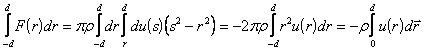 Направленная внутрь сила, действующая на молекулу на глубине r < d, противоположна по знаку направленной наружу силе, которая бы возникла со стороны молекул в заштрихованном объеме, если бы он был заполнен равномерно с плотностью .