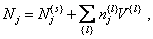 — плотность количества молекул сорта j в [объемной] фазе {l}. Тогда полное число молекул сорта j в рассматриваемой системе равно