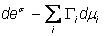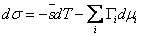 В уравнении (39) суммирование производится по всем подвижным компонентам. Что касается неподвижных компонентов, образующих решетку твердого тела, то их химические потенциалы не фигурируют в уравнении (39). Гиббс вообще не вводил понятия химический потенциал неподвижного компонента. Его можно определить лишь условно и отдельно для каждого направления разреза твердого тела как химический потенциал в равновесной флюидной фазе, контактирующей с твердым телом по данному разрезу. Определенный таким образом химический потенциал неподвижного компонента mi' зависит в каждой точке тела от направления нормали