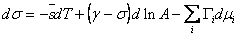 которое также является обобщением уравнения адсорбции Гиббса на случай твердой поверхности, но сформулировано в терминах избыточного поверхностного напряжения. Для жидкой поверхности