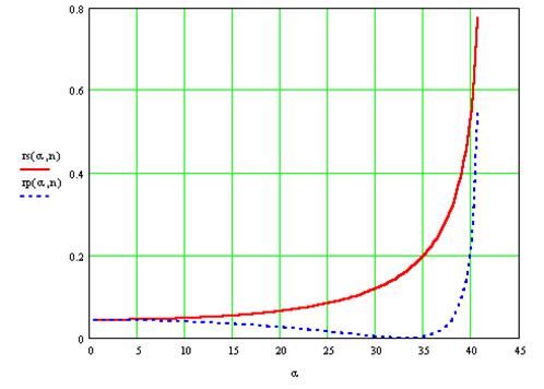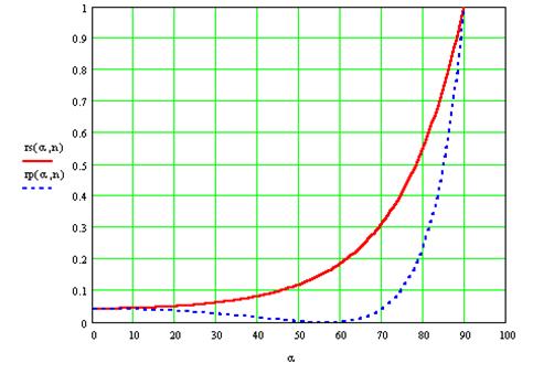 ). Причем как для случая падения из менее оптически плотной среды , так и из более оптически плотной. Ниже на рисунке представлены графически зависимости для обоих этих случаев.