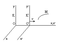 Координаты точки M, отсчитываемые относительно движущейся и относительно покоящейся систем отсчета K и K' связаны следующими формулами преобразования: