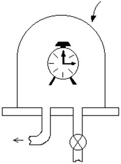 Звонящий будильник помещают под стеклянный колокол, из которого насосом выкачивают воздух. По мере удаления воздуха из - под колокола звук от будильника становится все слабее и слабее, пока не пропадет совсем. Если открыть кран и впустить обратно под колокол воздух, то громкий звук будильника будет снова слышен. При всех этих манипуляциях, однако, мы все время видим будильник через стенки колокола, а следовательно, световые волны в отличие от звуковых могут распространяться и в пустом пространстве под колоколом, фактически лишенном воздуха.