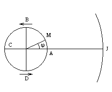 Если в первую половину года, когда Земля двигалась по пути ABC, т.е. удаляясь от Юпитера, наблюдаемые с Земли периоды Tk обращения спутника были больше истинного периода T0, то во вторую половину года, когда Земля будет двигаться по пути CDA, т.е. приближаясь к Юпитеру, наблюдаемые периоды Tk обращения спутника будут меньше истинного периода T0 причем для второй половины года