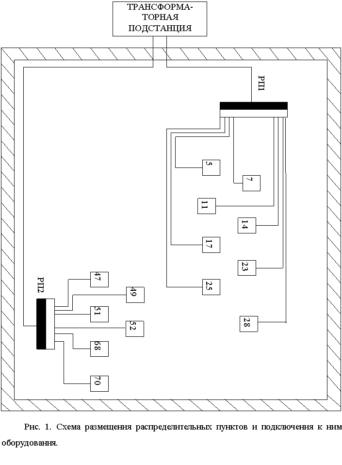 Рассчитаем величину пускового тока Iп для каждого электродвигателя установленного в цехе:
