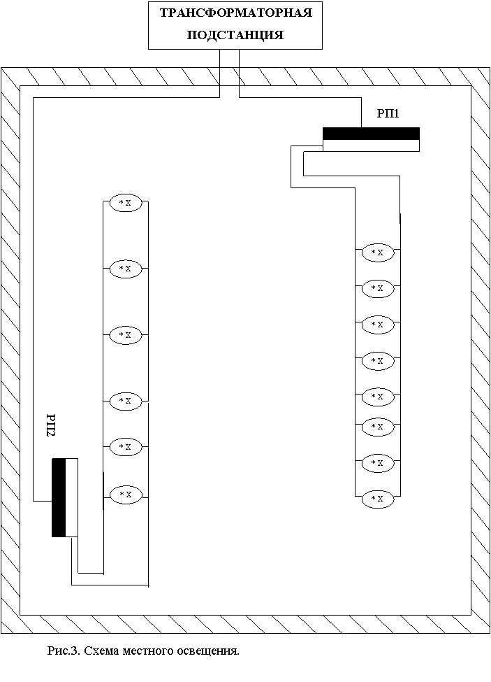 Начертим схему общего освещения цеха и схему местного освещения цеха.