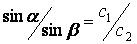 При прохождении из среды со скоростью звука с1, в среду со скоростью с2, изменение направления лучей подчиняется закону импульсов: