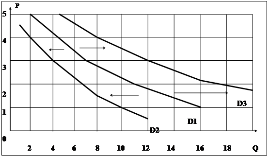 Изменение величины спроса означает передвижение с одной точки на другую точку на постоянной кривой спроса, то есть переход от одной комбинации “цена — количество продукта” к другой комбинации. Причиной изменения величины спроса служит изменение величины данного продукта.