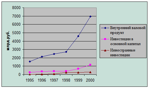 В Таблице 2 представлены данные по объемам иностранных инвестиций в российскую экономику в период 1995-2000гг.[5].
